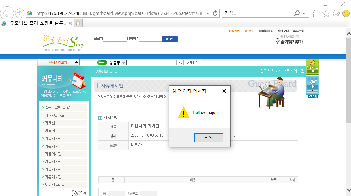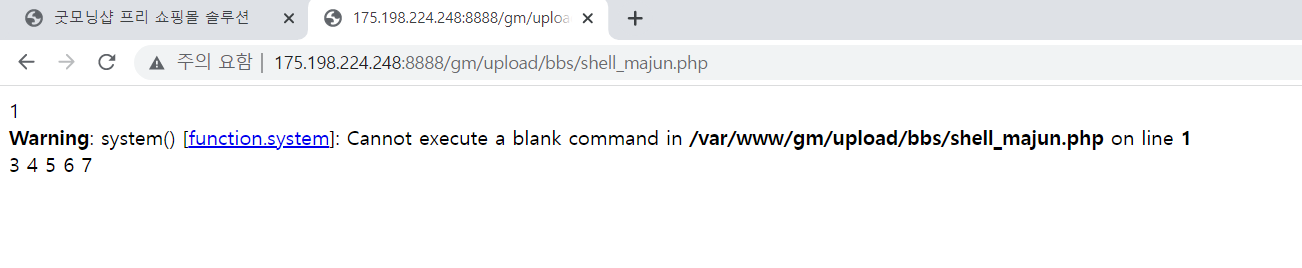 http://175.198.224.248:8888/gm/upload/bbs/shell_majun.php 에 파일이 생성되었을거다 가서 확인해보자.