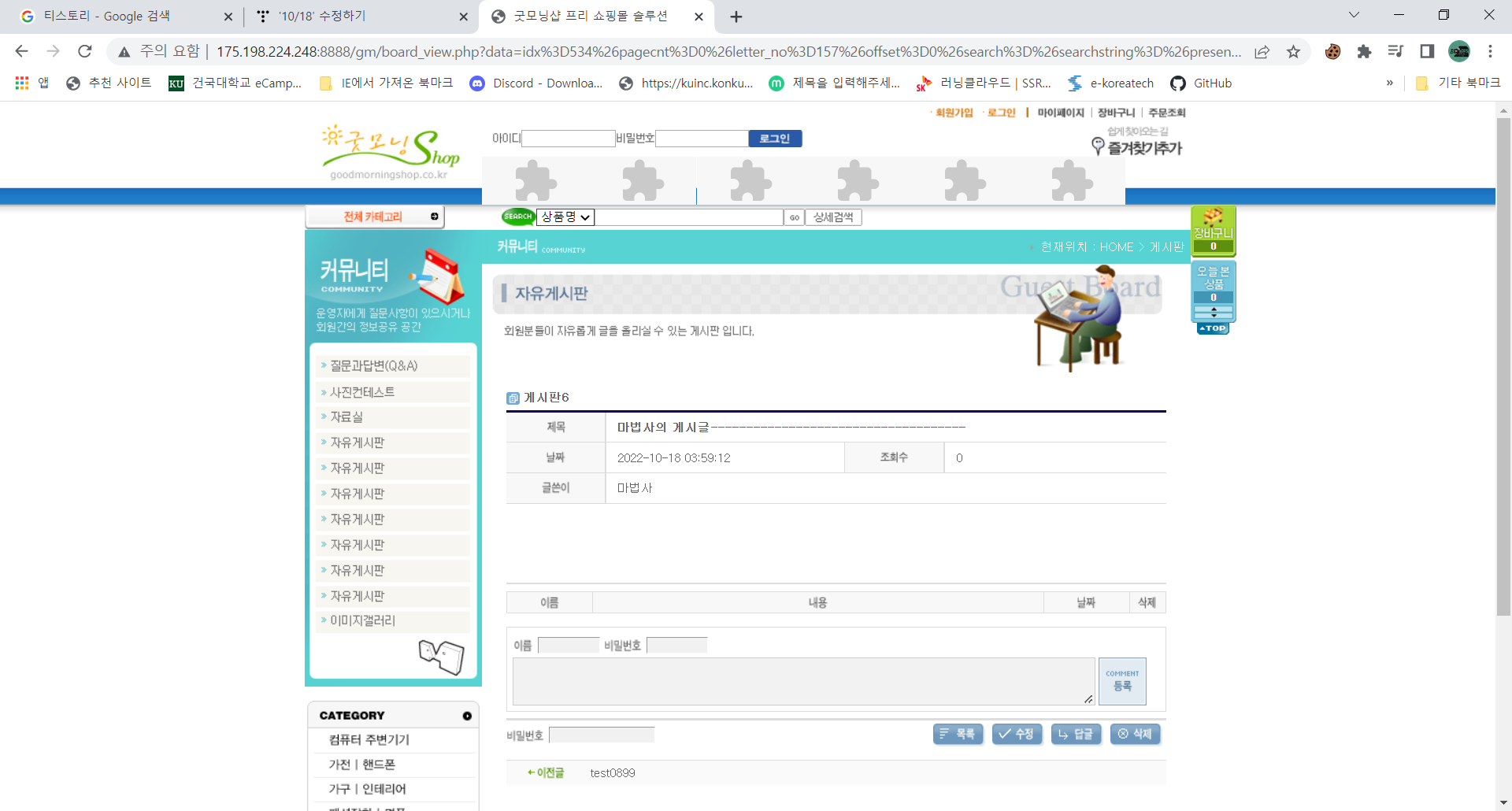 = 게시판에 올린모습