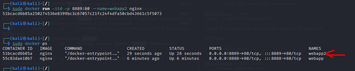 = $ sudo docker run -itd -p 8889:80 --name=webapp2 nginx 이런식으로 쓰면 하나 더 만들 수 있음.