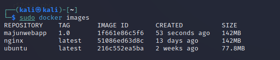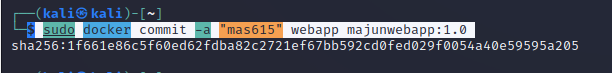 $ sudo docker commit -a "mas615" webapp majunwebapp:1.0