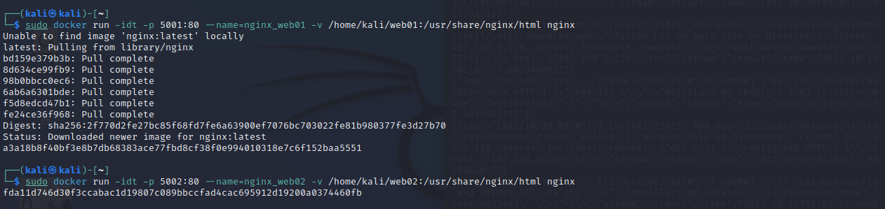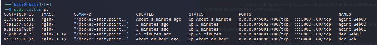 $ sudo docker run -idt -p 5003:80 --name=nginx_web03 -v /home/kali/web03:/usr/share/nginx/html nginx