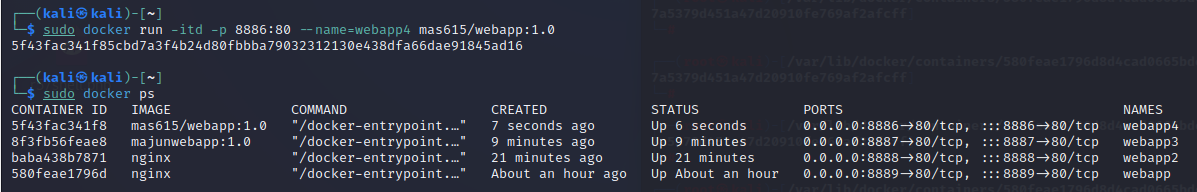 $ sudo docker run -itd -p 8886:80 --name=webapp4 mas615/webapp:1.0