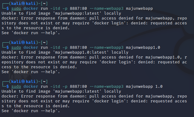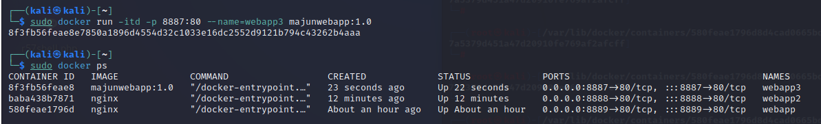 $ sudo docker run -itd -p 8887:80 --name=webapp3 majunwebapp:1.0
