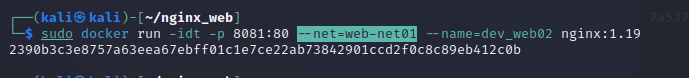 $ sudo docker run -idt -p 8081:80 --net=web-net01 --name=dev_web02 nginx:1.19