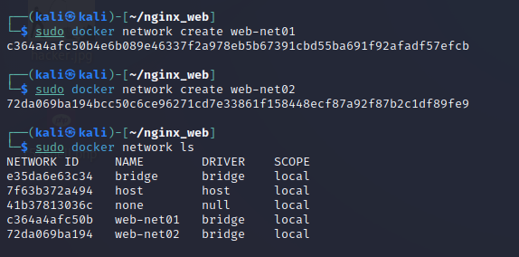 $ sudo docker network create web-net01