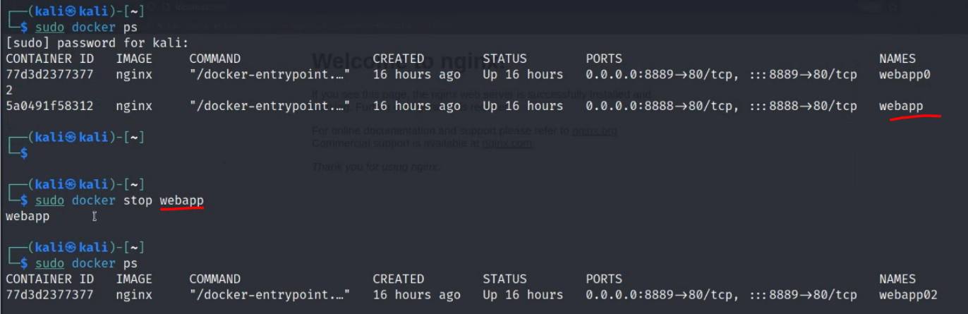 $ sudo docker run -itd -p 8889:80 --name=webapp nginx